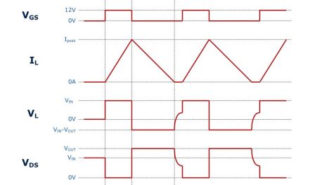 如前文所述,在所有標(biāo)準(zhǔn)電源拓?fù)洌ㄉ龎恨D(zhuǎn)換器、降壓轉(zhuǎn)換器和反激式轉(zhuǎn)換器)中,每個(gè)開關(guān)周期結(jié)束后,VDS均收斂到輸入電壓。因此,MOSFET的漏源寄生電容(CDS)存儲(chǔ)了一些電荷,在下一個(gè)開關(guān)周期通過MOSFET釋放。這表現(xiàn)為MOSFET產(chǎn)生額外的瞬態(tài)漏極電流(ID)變大。