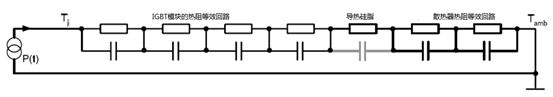 如果在動(dòng)態(tài)溫升過程中,IGBT模塊的損耗P(t)是已知的,IGBT模塊底殼溫度T_case是已知的,則IGBT及二極管芯片的結(jié)溫可由下公式得出: