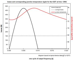 IGBT模塊和散熱器的動(dòng)態(tài)熱阻特性允許模塊短時(shí)間過載工作。合理的利用動(dòng)態(tài)熱阻特性可使電機(jī)功率輸出性能提高,但同時(shí)必須在設(shè)計(jì)時(shí)精確的進(jìn)行仿真計(jì)算,動(dòng)態(tài)的控制不同輸出頻率下的電流限值。Infineon公司所提供的IPOSIM仿真工具,具有對(duì)穩(wěn)態(tài)下和動(dòng)態(tài)循環(huán)下的結(jié)溫仿真功能,使設(shè)計(jì)者在系統(tǒng)設(shè)定和模塊選型時(shí)能更加準(zhǔn)確和安全。(英飛凌igbt廠家)