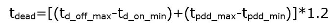 最大關(guān)斷延遲時間是計算死區(qū)時間時應考慮的最重要因素。因為該值幾乎完全決定最終計算的死區(qū)時間是多長。所以我們將詳細地研究該延遲時間。
