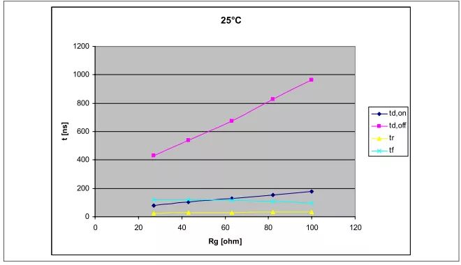 圖4 開關(guān)時間與Rg在25°C時的關(guān)系圖