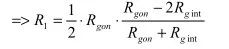 從公式中可以看出,要想讓R1為正值,Rgon必須大于2Rgint。但在一些模塊中,這個要求并不可能滿足。這種情況下,R1可以完全忽略。